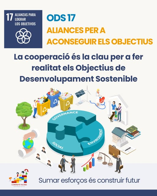 Los grandes cambios no se consiguen solos. El ODS 17 nos recuerda que la cooperación es esencial: escuelas, familias, entidades, administraciones y comunidades trabajamos juntas para construir un mundo más justo y sostenible.